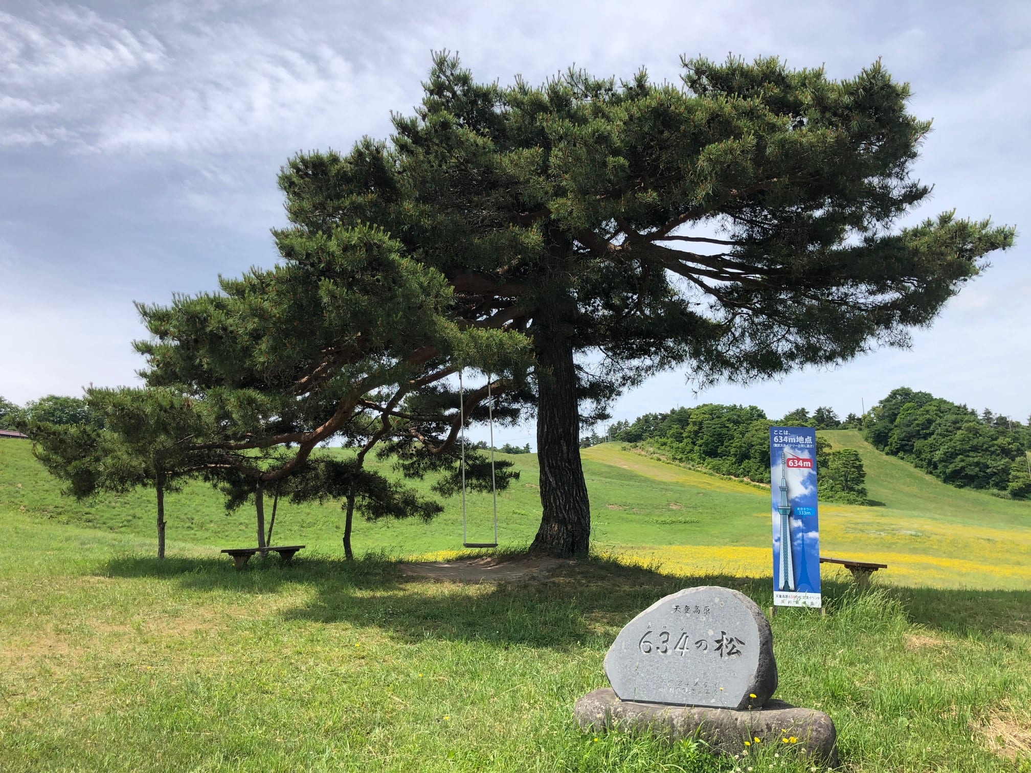 天童高原のキャンプ場へ行く途中には、『634の松』があります。