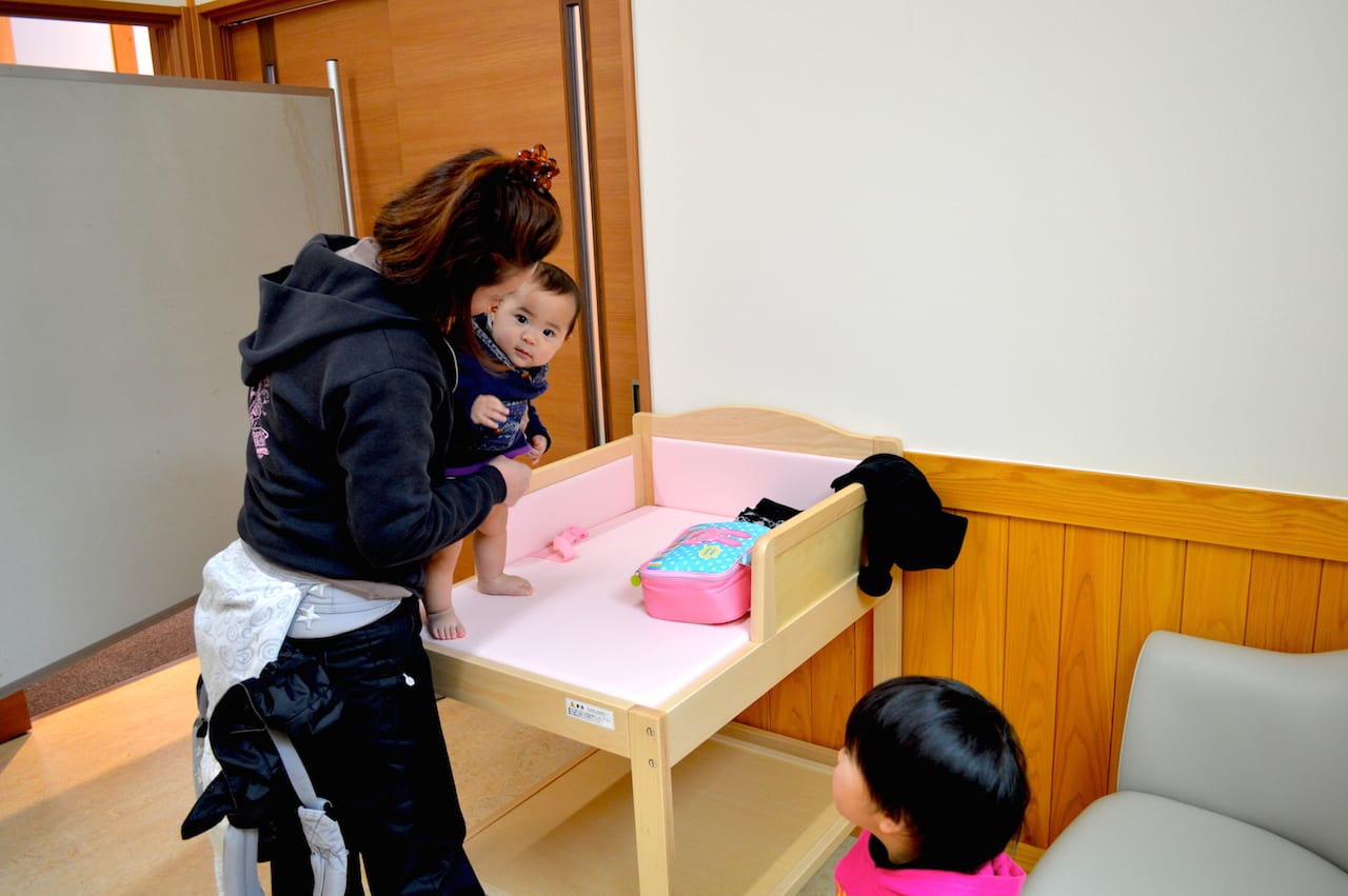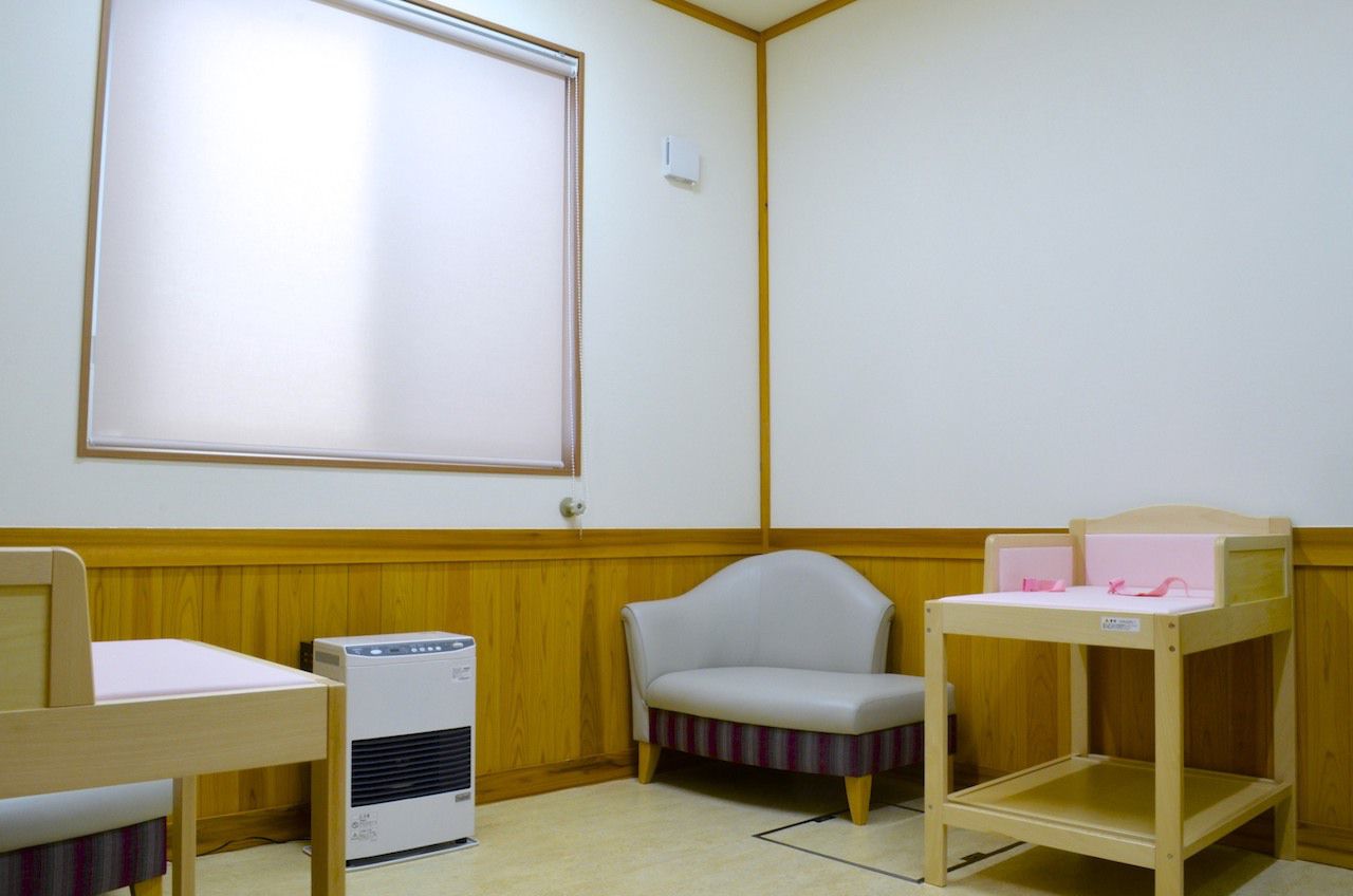 天童高原地域交流センターでは、赤ちゃんや小さなお子様つれのお客様にも便利に安心してご利用いただくために授乳室を設けました。おむつ換えベッド2つ、授乳用のソファー2つ、電気ポットなど準備しております。